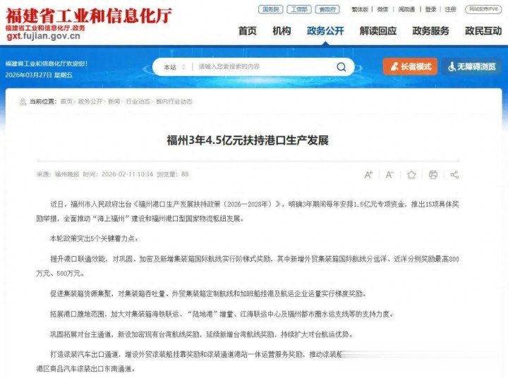 不过,福州在省内固然一骑绝尘,可还需要参与国内竞争,前几十年拉下的功课还有很多要补,城市快速发展处处都要用钱。比如福州港货物吞吐量虽然跻身世界前二十,但集装箱吞吐量还跟厦门差很远。所以今年刚开年,福州就推出新一轮的港口生产发展扶持政策,三年4.5亿,很舍得给企业发奖励。